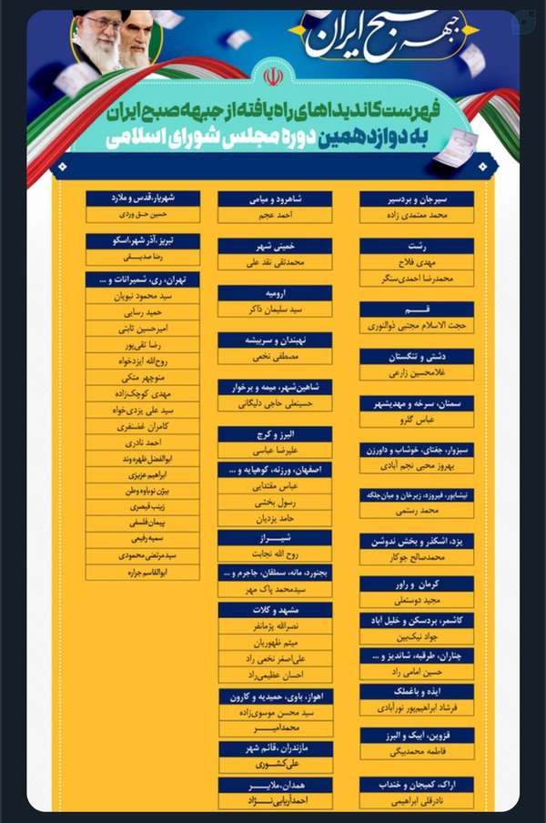 @Reza_Bushehry27 May 2025Replying toچرا نماینده های ضدفساد و افشاگر مجلس، و اهل نطق های آتشین و انقلابی!!! برای ریاست مجلس و هئیت رئیسه نامزد نشدن تا قالیباف رو به زیر بکشن و با پاکسازی مجلس از لوث فساد، مجلسو به رأس امور برگردونن؟ 🤔🤔🤔#رسائی#ثابتی#آقاتهرانی#نقدعلی#کوچکزاده#مدعیان_ضدفساد