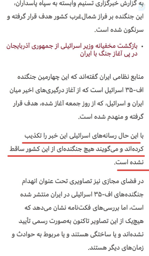 در پایان باید گفت ایجاد جو رسانهای مبتنی بر خبر کذب موجب بیاعتمادی مردم به رسانههای خودی و مرجعیتیافتن رسانههای دشمن میشود کمااینکه اسرائیلیها هدفقرارگرفتن جنگندههایشان را قویا تکذیب کردهاند.