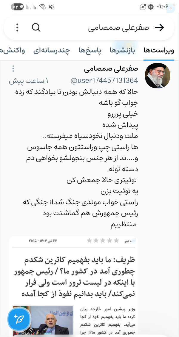 @user17445713136415 July 2025اصلاحات یعنی خود نفوذ یعنی نفوذ غربکدایی در نظامکسی رو دنبال نخود سیاه نفرستناصلا خود ظریف یعنی نفوذ