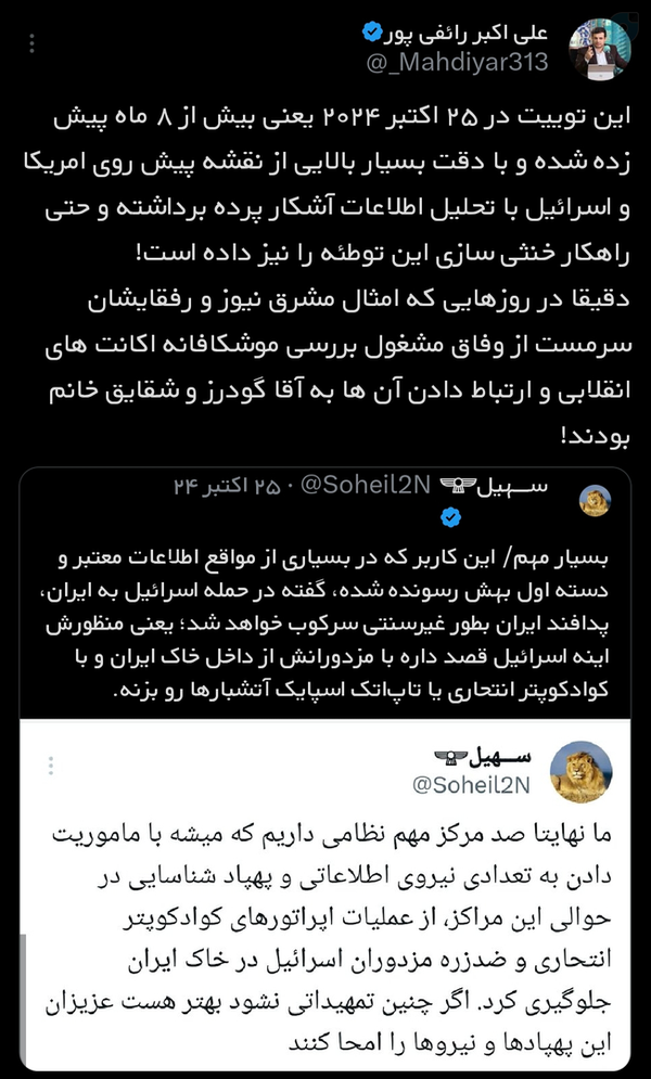 14 July 2025هرچه کشیدیم و میکشیم از خواص بیصیرت یا خائن در لباس خودی بوده و هست ...لعنت به آنها که به جای کار برای منفعت کشور فقط و فقط منافع شخصی و جناحی خودشان را در اولویت قرار دادند#نفاق_در_لباس_وفاق