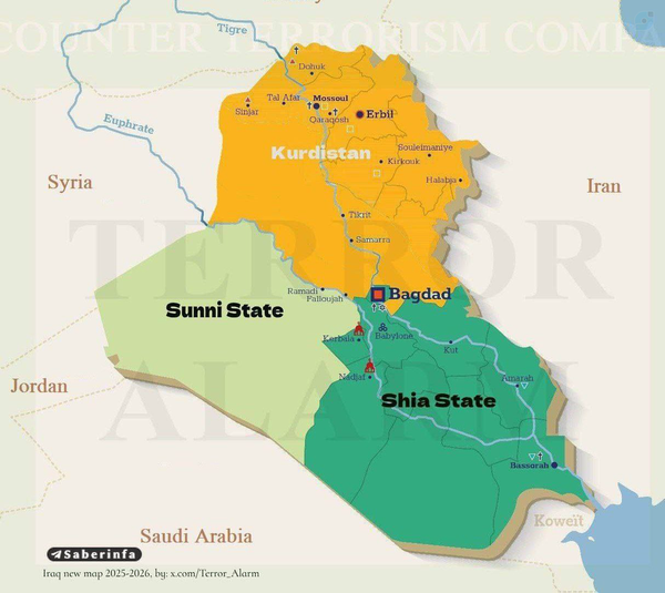 اکانتهای اسرائیلی این نقشه تجزیه را به عنوان عراق در سال ۲۰۲۶ منتشر کردند