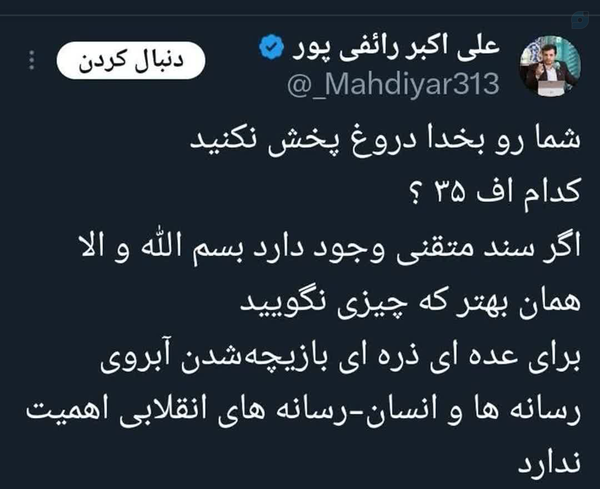 ▪️به عنوان یک خبرنگار همواره تلاش کرده‌ام تا جایی که امکان دارد، خبر درست و صحیح را منتشر کنم، اما مهم‌تر از همه و بالاتر از همه این مسائل یکی از مهمترین و اصلی‌ترین تلاش‌هایم این بوده که همواره امنیت ملی را به عنوان خط قرمز خودم نگه داشته و از آن عبور نکنم. اینکه چیزی نشان داده نمی‌شود دلیلی بر