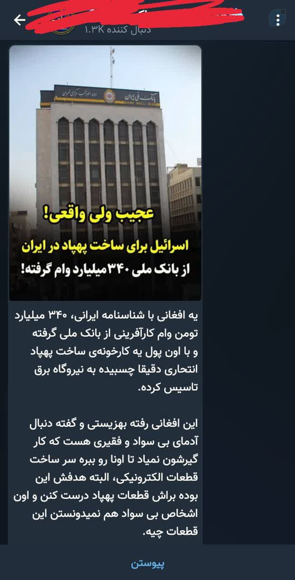 📌متن شبهه👇عجیب ولی واقعیاسرائیل برای ساخت پهپاد در ایران از بانک ملی ۳۴۰ میلیارد وام گرفته!!!یه افغانی با شناسنامه ایرانی ۳۴۰ میلیارد تومن وام کارافرینی گرفته📌پاسخ به شبهه👇 ❌این مطلب توسط شخصی به نام «علیاکبر راهانجام» در فضای مجازی منتشر شده که برخی ان را بنام «علیاکبر رائفیپور»