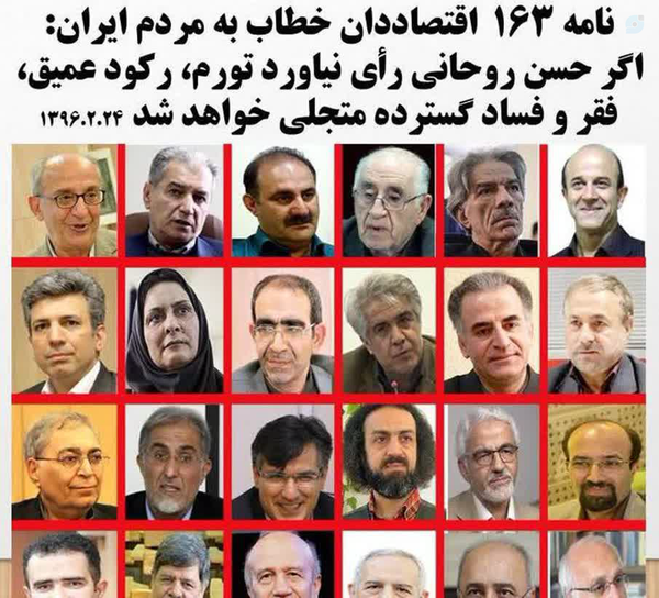 پیشنهاد ذلیلانه ای که برخی از (مثلاً) اساتید دانشگاه نوشتند و درخواست تسلیم ایران را داشتند آدم را یاد نامه این ۱۶۳ (مثلاً) اقتصاددان در سال ۹۶ میاندازد که گفتند: اگر به روحانی رأی ندهید کشور دچار رکود عمیق، تورم، فقر و فساد گسترده میشود!!!از این (مثلاً) تحصیل کردگان و متخصصان باید ترسید...