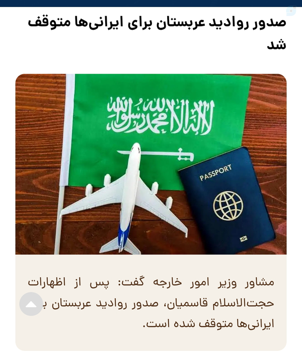 هزینه بی تدبیری یک فرد برای کل کشور و صدها هزار زائر منتظر زیارت حج:حکام عربستان که با تلاش بسیار با سفر حجاج موافقت کرده بود و ۸۵هزار ایرانی امسال به حج رفتند دنبال بهانه ای برای جلوگیری از سفر حجاج ایرانی بود با بی تدبیری یک فرد صدور روادید برای ایرانیان را متوقف کرد.حال این شجاعت است یا ....؟