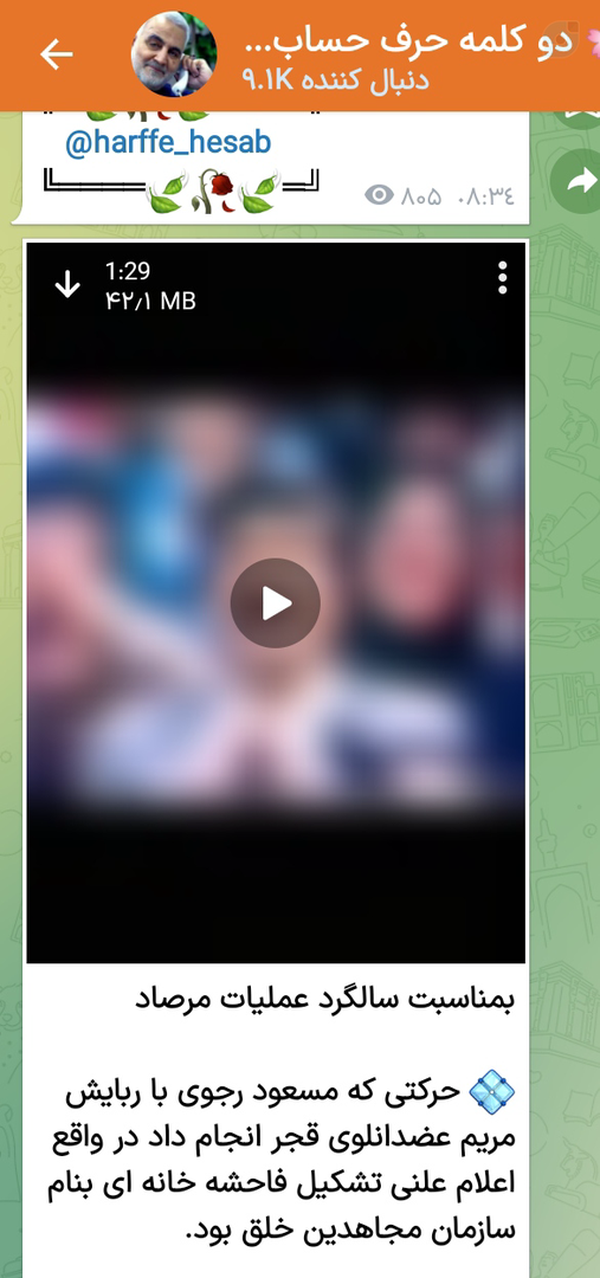 بمناسبت سالگرد عملیات مرصاد💠 حرکتی که مسعود رجوی با ربایش مریم عضدانلوی قجر انجام داد در واقع اعلام علنی تشکیل فاحشه خانه ای بنام سازمان مجاهدین خلق بود.💠 گرفتن طلاق از مهدی ابریشمچی و همان روز ازدواج با مسعود بدون عدهی شرعی و در یک جلسهاین ازدواج ِ به اصطلاح انقلابیلکه سیاهی در روابط