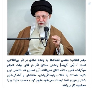 از کسیکه وعده صادق را کاذب مینامه و اینطوری رهبری و نظام را زیر سوال میبرد چه توقعی دارین