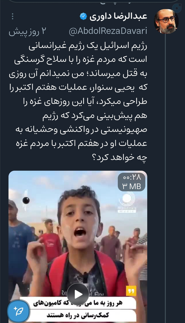 اون موقع که پیامبر (ص) اسلام رو علنی کرد آیا فکر اینکه در شعب ابی طالب باید ۳ سال در تحریم و گرسنگی از طرف قوم و قبیله خود قرار بگیرد رو میکرد؟!؟! (عبدالرضا داوری) راه حق هزینه دارد، که شما تکنو کرات ها و اصلاح طلب ها در راهش یک سیلی هم نخورده اید. ۱٠٠٪
