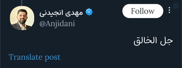 سید علی جعفری@S_alijafari8 July 2025Replying to @Bannoand@User13611362حالا میگفت زیاد ویراست میزنید یچیزی👀1106471