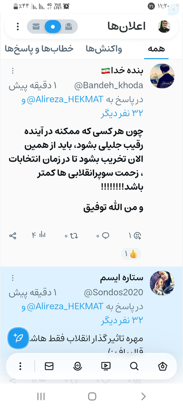 @Bandeh_khoda12 July 2025Replying to and 31 othersچون هر کسی که ممکنه در آینده رقیب جلیلی بشود، باید از همین الان تخریب بشود تا در زمان انتخابات ، زحمت سوپرانقلابی ها کمتر باشد!!!!!!!!و من الله توفیق