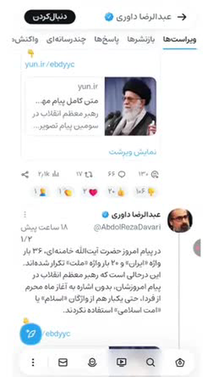 امشب یک شب تاریخی بود و مهمترین و تاریخی ترین لحظه آن در این تصویر ثبت شد.نام این لحظه شد #ای_ایران_بخوان که درشب مقدس #عاشورا بنیاد مستحکم #هویت_ملی_و_مذهبی ایرانیان را به رخ جهانیان کشید و نقشه های دشمنان و سازندگان دوگانه امت و ملت را تباه کرد.#لبیک_یاحسین#جانم_فدای_ایران