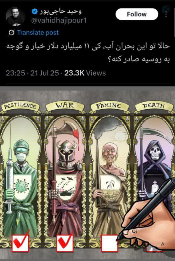 آذر احمدی اذر@user16834033868622 July 2025Replying to @Emami1368با انتخاب پزشکیان دولت دوم روحانی ملعون باید دچار یه همچون وضعی بشیم100301