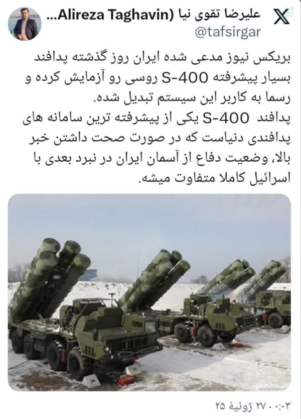 مدافع جدید آسمان ایران / S-400 روسی