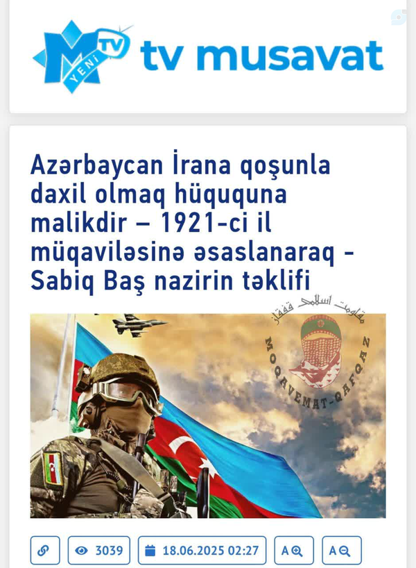 آذربایجان حق دارد با نیروهای نظامی وارد ایران شود - بر اساس قرارداد ۱۹۲۱ - پیشنهاد نخست وزیر سابق.