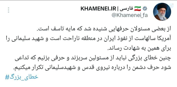 این توئیت رهبری قدیمیه و ۴ سال پیش منتشر شده. https://eitaa.com/islamwanter/345