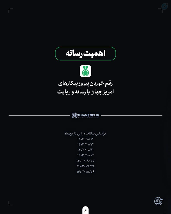 📊 #اطلاع_نگاشت | جنگ روایت و رسانه🖼 بخشهای متفاوت را در ادامه با بیانات ✏️ حضرت آیتالله #امام_خامنهای ببینید و دنبال کنید 👇