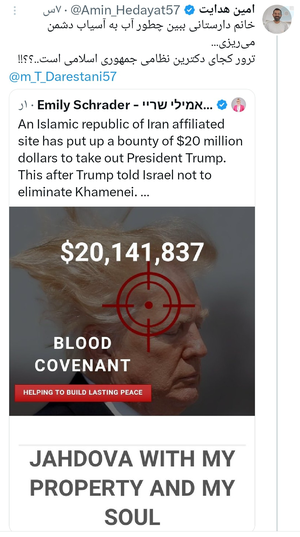 مهری طالبی دارستانی@M_TalebiDarestani • 8 July 2025چه آبی تو لونهی دشمن افتاده از این کمپین مردمی هنوز قدرت ملت ایران را نشناختند به زودی خواهند فهمید که این یک مبارزهی حقیقی با تروریسم دولتی آمریکاست دستمریزاد به طراحان کمپین #عهد_خون https://thaar.ir/
