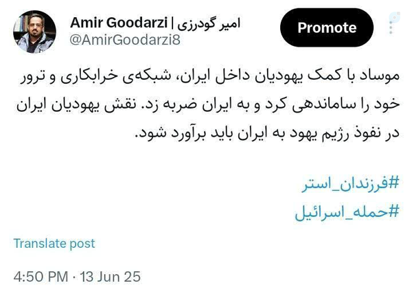 عبداله تراب@Drtorbat13 June 2025Replying to @Forghan1214محدوده خیانت را کوچک نبینیم! امثال محسن لنگرنشین معدوم و یا محمدصالح لبنانی، لزوما یهودی نبودند...00033