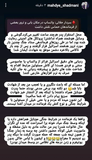 @ID_B_ID4 July 2025Replying to andبا نهایت احترام به خانواده شهید متاسفانه تصور درستی از #کلان_داده اجتماعی ندارند.در حالی که خواهر معترض است که پدر نه موبایل داشته و نه فلان و بهمان، برادر در یک استوری معمولی لوکیشن یکی از مقر های مهم سپاه را لو داده است...کافی است لوکیشن صبح مورد اشاره ایشان توسط اینستاگرام چک شود!!!