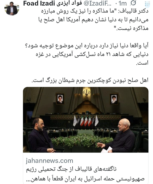 @Kiants7712 July 2025Replying toشما فیلمش را دیدید ما تمام مدت پای گیرنده بودیم.آقای ظریف جوری آقای ایزدی را ضربه فنی کرد که در تاریخ بماند.به عنوان نمونه ایزادی نه توانست آمارهای غلطش را زیر سوال ببرد نه توانست بگوید آقای ظریف شما به ما گفتی برجام نقض نمیشه ولی شد برای این چه جوابی داری؟بنظرم یکبار دیگر از اول تا آخر ببینید