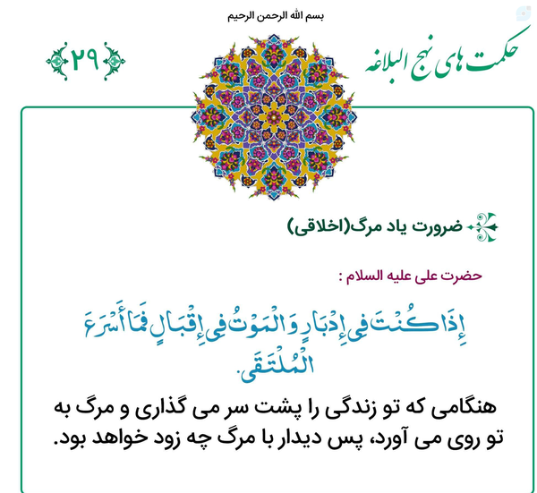 در محضر امیرالمومنین نهجالبلاغه حکمت ۲۹:حرکت سریع به سوی مرگ