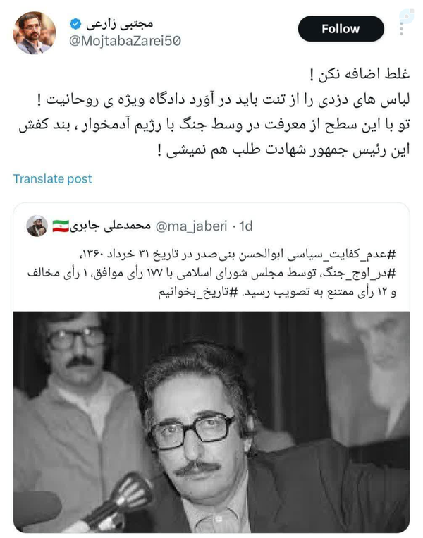 ⭕️ میرغضب اصلاحات🔹یک نماینده مجلس هست که اگر فردی اسب اصلاح طلبان را یابو خطاب کند با چماق "غلط می کنی" سراغ آن فرد می رود و ...!🔹در چشم این نماینده هر چه نیروهای انقلابی انجام می دهند ضد امنیت ملی است،اما هرچه لیبرالها مرتکب می شوند اشکالی ندارد وباید سکوت کرد تا وفاق به هم نخورد!✍️دکتر کوشکی
