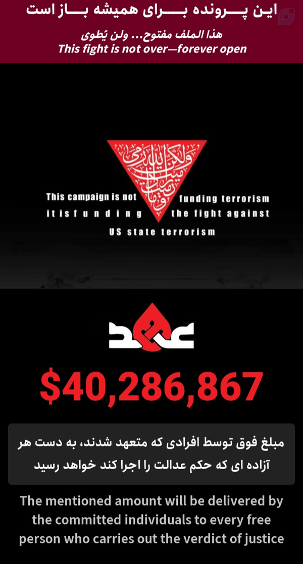 @Sadr140310 July 2025Replying to and#پویش_جایزه_سر_محاربین $40 میلیون #دلاری شد...برای مشارکت در پویش #عهد_خون به وبگاه https://thaar.ir/ مراجعه و آن را به دوستان خود معرفی کنید.…Show more