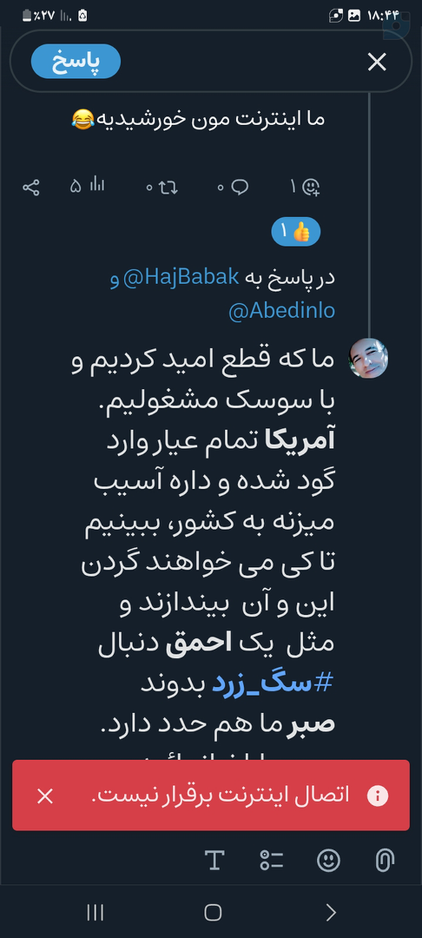کثافت حقارت پستی ذلت خیانت حماقت خریت یعنی اینقدر بی شرف و بی وجدان باشی اینقدر نامرد باشی بالاترین پست ومقامها را از دست مردم بگیری وارد کار که شدی، بهشون یک مشت دروغ ودونگ تحویل بدیچرا به مردم نمی گید که آمریکا با ما چه کرده می ترسید مردم نگذارند #مذاکره کنیدمردم آمریکای خیانتکار خیانت کرده