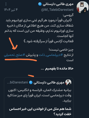 مشخصا انگاره وقوع صلح تحمیلی و برچسب دروغ گویی زدن مسئولان