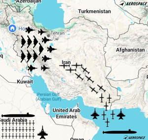 اقیانوس اطلس و دریای مدیترانه به آسمان ایران رسیدند همچنین در نقش پشتیبان هوایی تعدادی جنگنده F22 به کمک بمب افکن های امریکایی آمدند این هواگرد ها حدودا در ساعت 3 بامداد روز بعد یعنی یکم تیر 1404 به آسمان اصفهان و قم وارد شدند و تعداد 14 بمب سنگر شکن فوق سنگین GBU57 را بر سر تاسیسات مظلوم فردو و