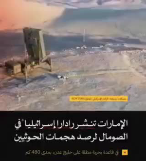 امارات درشهر بوصاصوی سومالی درخلیج عدن رادار اسرائیلیELM-2084 را مستقر کرده تا به رهگیری موشک های یمنی که به سمت اسرائیل و کشتی های عبوری در خلیج عدن و اقیانوس هند شلیک می شوند، بپردازد.آیا امارات میداند این کار یعنی شراکت در تجاوز به یمن و به وقتش در ابوظبی و دُبی پاسخ می گیرد؟ علیرضا تقوی نیا