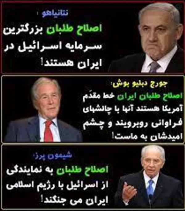 #اسرائیل با موشک #صداوسیما را زد بعدش #اصلاحات شروع به تخریب صداوسیما کردند.اسرائیل #زندان_اوین را زد بعدش اصلاحات درخواست #عفو_عمومی برای مجرمان کردند.اسرائیل نقشه #ترور_رهبری را میکشد بعدش اصلاحات #حسن_روحانی را به عنوان رهبر معرفی کردند. [۱]