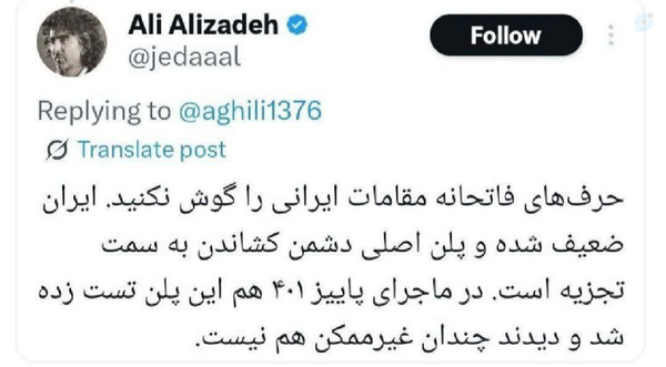 به حرف مقامات ایرانی گوش نکنید به جایش لاطائلات رنگین و بزک شده کارشناس مثلا سابق بی بی سی رو سردست بگیرید او دلسوز ایران و ایرانی است.مثلا زیرکانه پروژه را پیش میبرد... اعتماد به نمک پرورده های شغال پیرو نشاندن بر جایگاه جهت دهی افکار انقلابی ها...#نفوذ