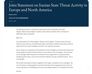 هم اکنون بیانیه ۶کشور علیه ایران:وقتی مسؤلان غربزده منفعل باشند و درمقابل غربیها مماشات کنند ،وقتی هنوز داغ عزیزان شهیدمان تازه است دم از مذاکره میزنند،نتیجه این میشود که وقیح تر شده و علیه ایران بیانیه صادر میکنند متن بیانیه:بیانیه زیر توسط دولتهای ایالات متحده آمریکا، بریتانیا، آلبانی،