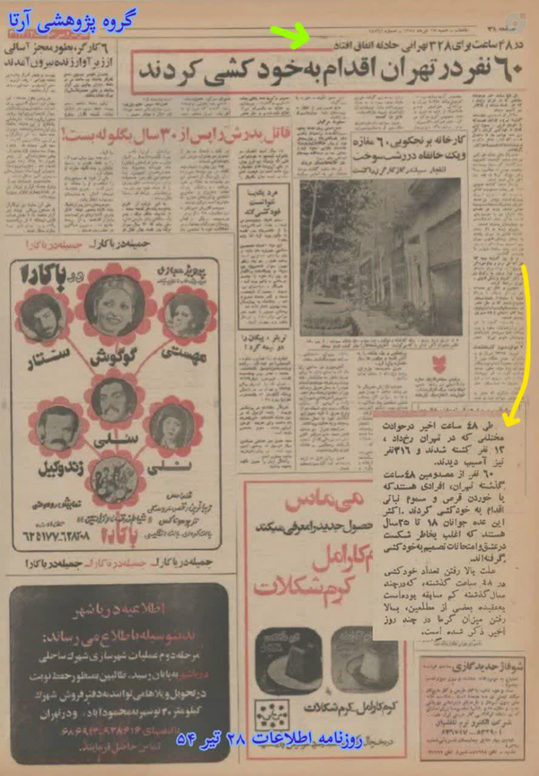 @Iran_1_20_124000_514722 July 2025Replying toگرما و خودکشی زمون شاه در ۴۸ ساعت گذشته ۶۰ نفر اقدام به خودکشی کرده اندافراد آگاه علت خودکشی ها را گرمای بی سابقه ذکر می کنند🤒روزنامه اطلاعات ۲۸ تیر ۵۴مثل اینکه تو گرما، بیخیال چای خوردن هم از برکات انقلابه زمان شاه به خاطر گرما خودکشی میکردن🤦🏻♂️😐