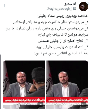 @shahid12012 July 2025Replying to and 36 othersاین دیگه آخر قدیس سازی جلیلی چیاستکارآمدی جلیلی کجا بود که هیچکس ندیدش؟!جایی گفتن آقای راجی گفته بروید دستاوردهای جلیلی را از روی کاغذ بخوانید تا مردم بهش رای دهند چیزی علی الارض وجود نداشت1 MB3 MB