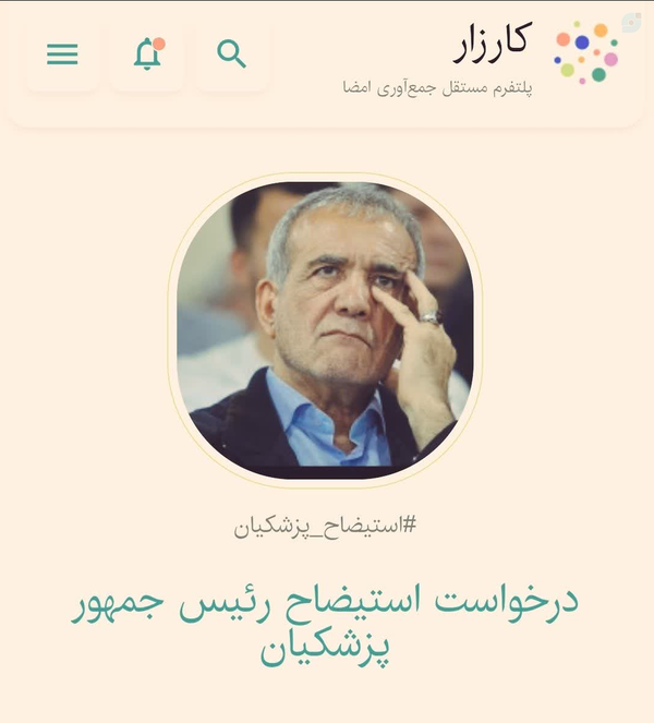 بسم الله الرحمن الرحیماولین تلاش های مردمی آغاز شد، الله اکبر...🔺تعداد امضاهای کارزار استیضاح رییسجمهور به بیش از 18000 امضا رسیده است.عزیزان دیدهاند که نمیتوانند جلوی افزایش امضا را بگیرند، یک کارزار دیگر با همین نام درست کردهاند!https://www.karzar.net/236130