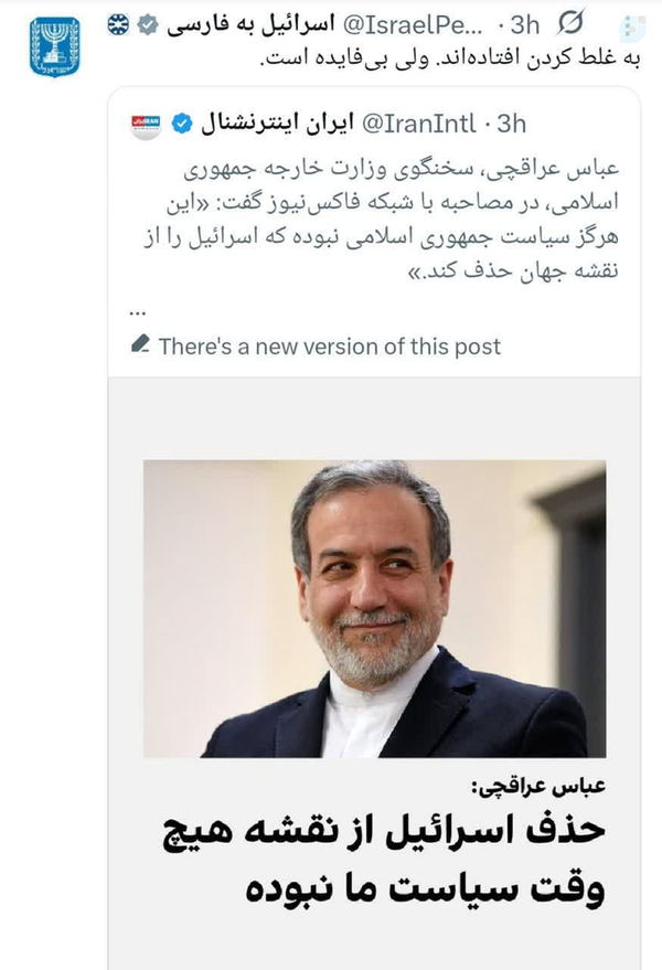 @Mahdiahmadpour200322 July 2025Replying toمتاسفانه جمله درستی است. و من هم معتقدم بی فایده است. نه از منظر صهیون، که از منظر خودمان. بی فایده است چون اولا امور این چیزها دست رهبر است، نه اینها. ثانیا، این اظهارات دارد درب خروج را به دولت نشان می دهد.