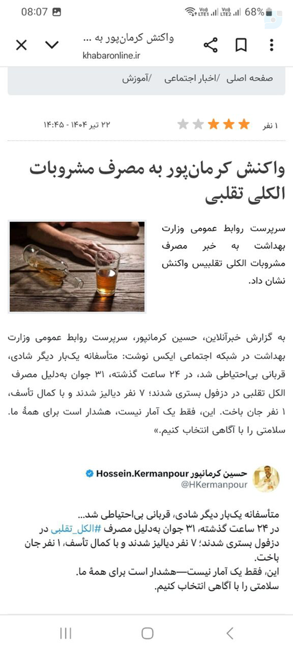 سلام علیکم و رحمت اللهاین مسئول وزارت خانه هیچ اشاره ای به تحریم شراب نکردهبلکه گفته برای شادی برید دنبال جنس اصلو انگار نه انگار که شراب حرام استو شغل اصلی یزید و یزیدیان شراب خواری است.انهم در ماه محرم❤️این واقعاً قلب انسان را سوراخ میکند.