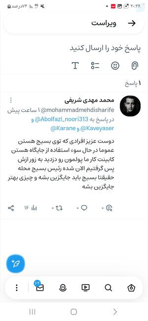این بنده خدا که جواب خودشو داده. طرف کابینت کار بوده حالا کارش نپسندیدن یا باب میل نبوده زیر بار نرفته و تازه آخرم پولو برگردونده. بهش تهمت دزدی زده که واقعا خجالت اوره .اینکه فرمانده و مسئولیت بسیج رو هم برعهده داره چه منافاتی با فعالیت اقتصادی و حقش داره؟بسیج از مردمه و حقوق نداره که