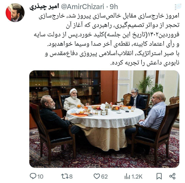 @Soheilgh2016 July 2025Replying to and 30 othersخوب شرکت میکرد و مجلس را از قالیباف میگرفت.خوبه ناخوداگاه اعتراف کردید که ایشون میخواستن رقیب شهید رییسی شوند