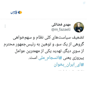 @shahid12010 July 2025Replying toرهبری با تضعیف دولت مخالفند و اون را حرام میدوننبا بدبین کردن مردم و سلب اعتمادشان از مسوولین مخافندوبارها اعلام کردندر نقدها هم گفتند باید نقاط قوت در کنار نقاط ضعف گفته شود تا تخریب دولت بوجود نیادبه نمایندگان هم فرمودن سوال و احضارهای زیادی نسبت به دولتیها نداشته باشیدوبذارید کارشان رابکنند