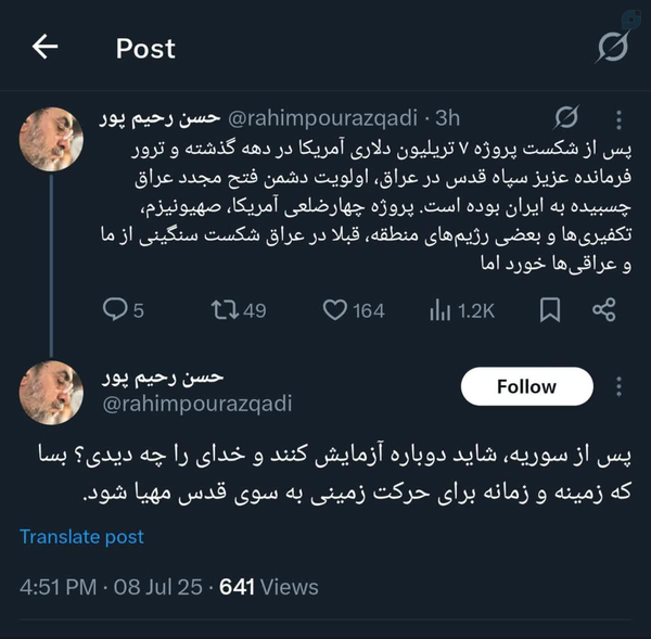 🇮🇷🏴بسم الله قاصم الجبارین🏴🇮🇷رحیمپور ازغدی: زمینه و زمانه برای حرکت زمینی به سوی قدس مهیا میشود.✨