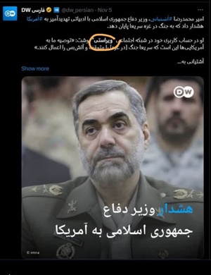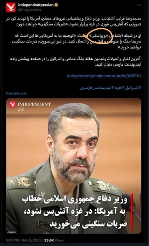 @Akhundi24 آبان 1402Replying to andتوصیه ما به آمریکاییها این است که سریعا جنگ را متوقف و آتش بس را اعمال کنید در غیر اینصورت ضربات سنگینی خواهید خورد.