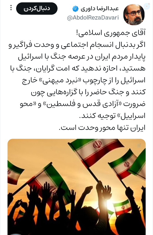 درست در زمانی که جریان «نه غزه نه لبنان جانم فدای ایران» با شهادت سران و فرماندهان جبههی مقاومت در غزه و لبنان و فروپاشی سوریه، و کشیده شدن آتش جنگ به خاک ایران، دچار شکست گفتمانی شد افرادی معلومالحال به تکاپو افتادند تا پیکر نیمهجان این جریان مضمحل و مفتضح را حیاتی دوباره ببخشند!