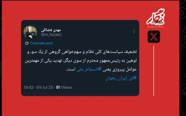عضو دفتر حفظ و نشر آثار رهبر انقلاب: تضعیف سیاستهای کلی نظام و سهمخواهی گروهی از یک سو، و توهین به رئیسجمهور محترم از سوی دیگر، تهدید یکی از مهمترین عوامل پیروزی یعنی