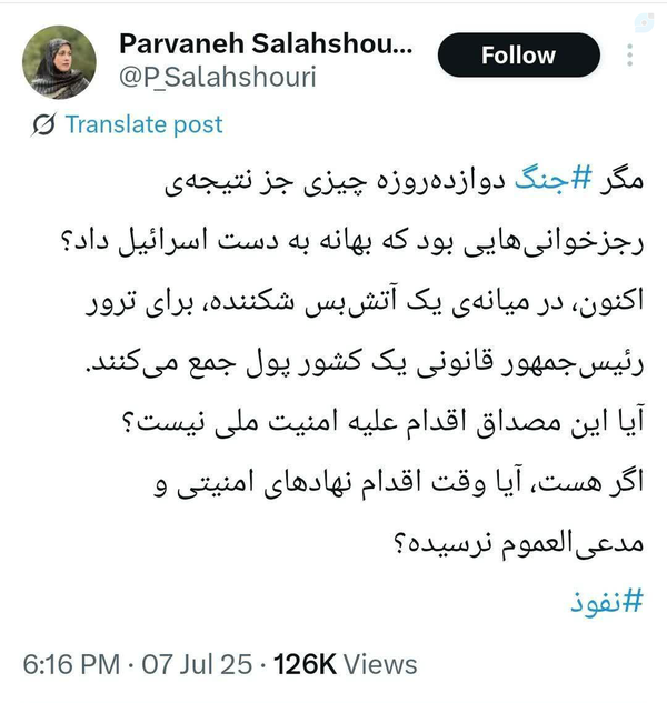 @M_ebrahim17 July 2025❌مملکت ما گرفتار چنین ابلههایی است که خیال میکنند تجاوز اسرائیل به ایران به خاطر رجزخوانی بوده و چون ما علیه اسرائیل رجز خواندهایم و بهانه به دستش دادهایم پس به ایران حمله کرده. 🔸واقعا مضحک است.