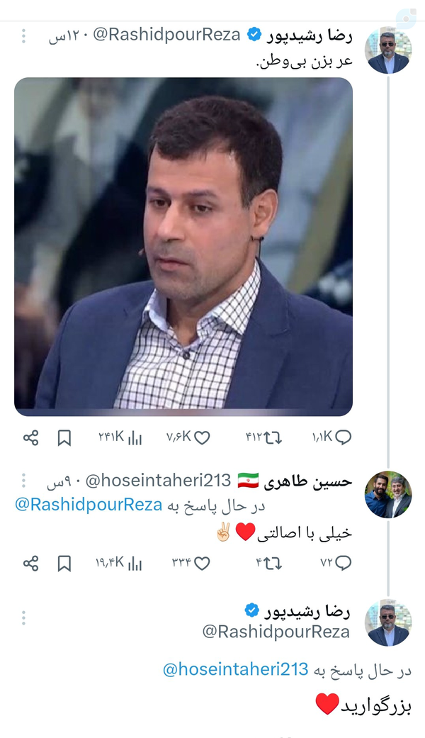 @KhanDadash_Hadi6 July 2025Replying to andکثافت و نجاست با هیچ چیز پاک نمیشهمدفوع سگهمیشه کثیف و نجسته، فقط میتونی با آب آن را از خودت دور کنی ولی باز هم نجست باقی میماند حتی اگه داخل اقیانوس باشرافتی بنام مردم ایران غرق بشه