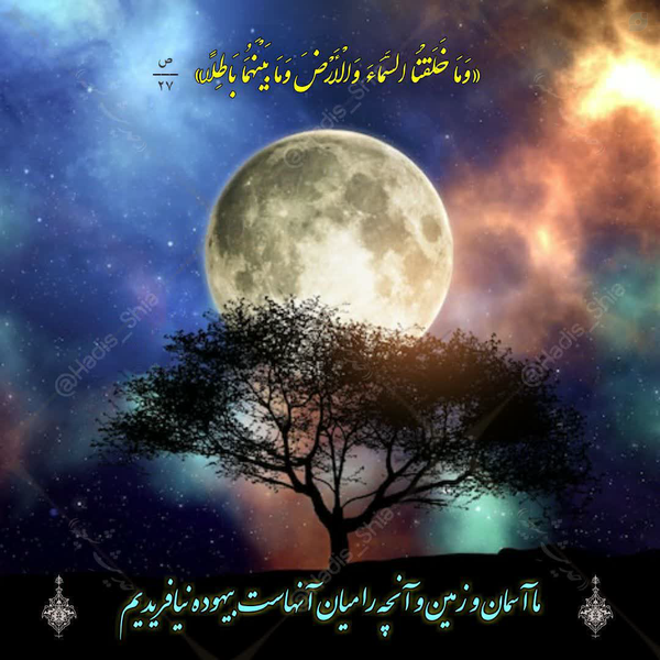 ما آسمان و زمین و آنچه را میان آنهاست بیهوده نیافریدیم؛ این گمان کافران است؛ وای بر کافران از آتش (دوزخ)!