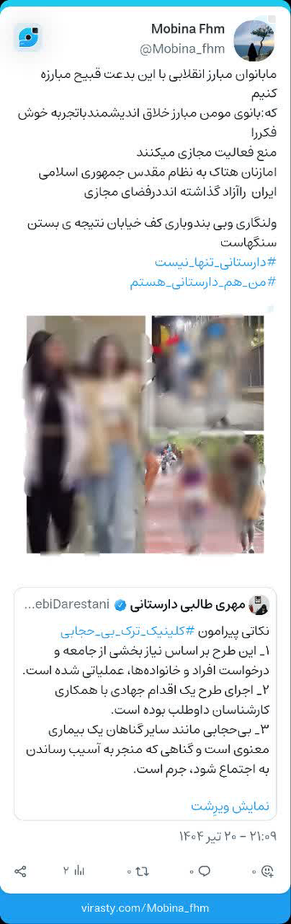 #ویرشتنادر طالب زاده به روایت کاترین شکدام۱/۳کاترین شکدام: «داستان نادر طالبزاده بیش از چیزی است که تصور میکردم؛ اگر او نبود، بعید بود در برابر رهبر ایران بنشینم، چه رسد به گفتگو با ابراهیم رئیسی؛ مطمئناً غیرت طالبزاده در پیشبرد نفوذ من در رژیم بیش از عملکرد یک راهنما برای نفوذ بود.»👇